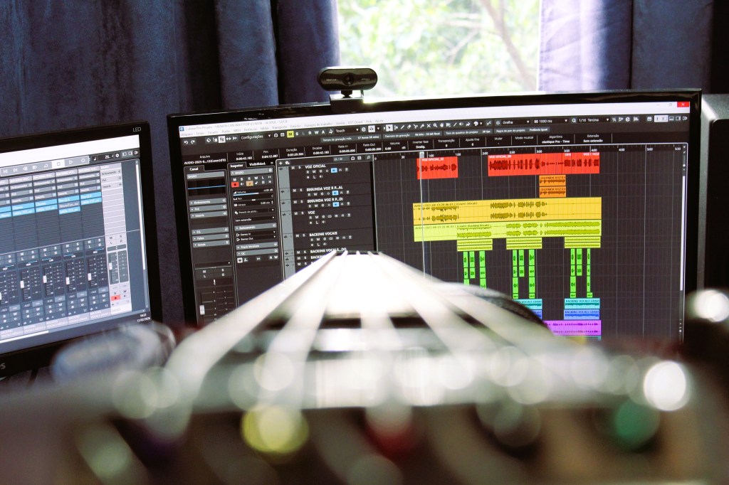 O estúdio possui equipamentos analógicos e digitais para realizar todas as etapas da produção musical.